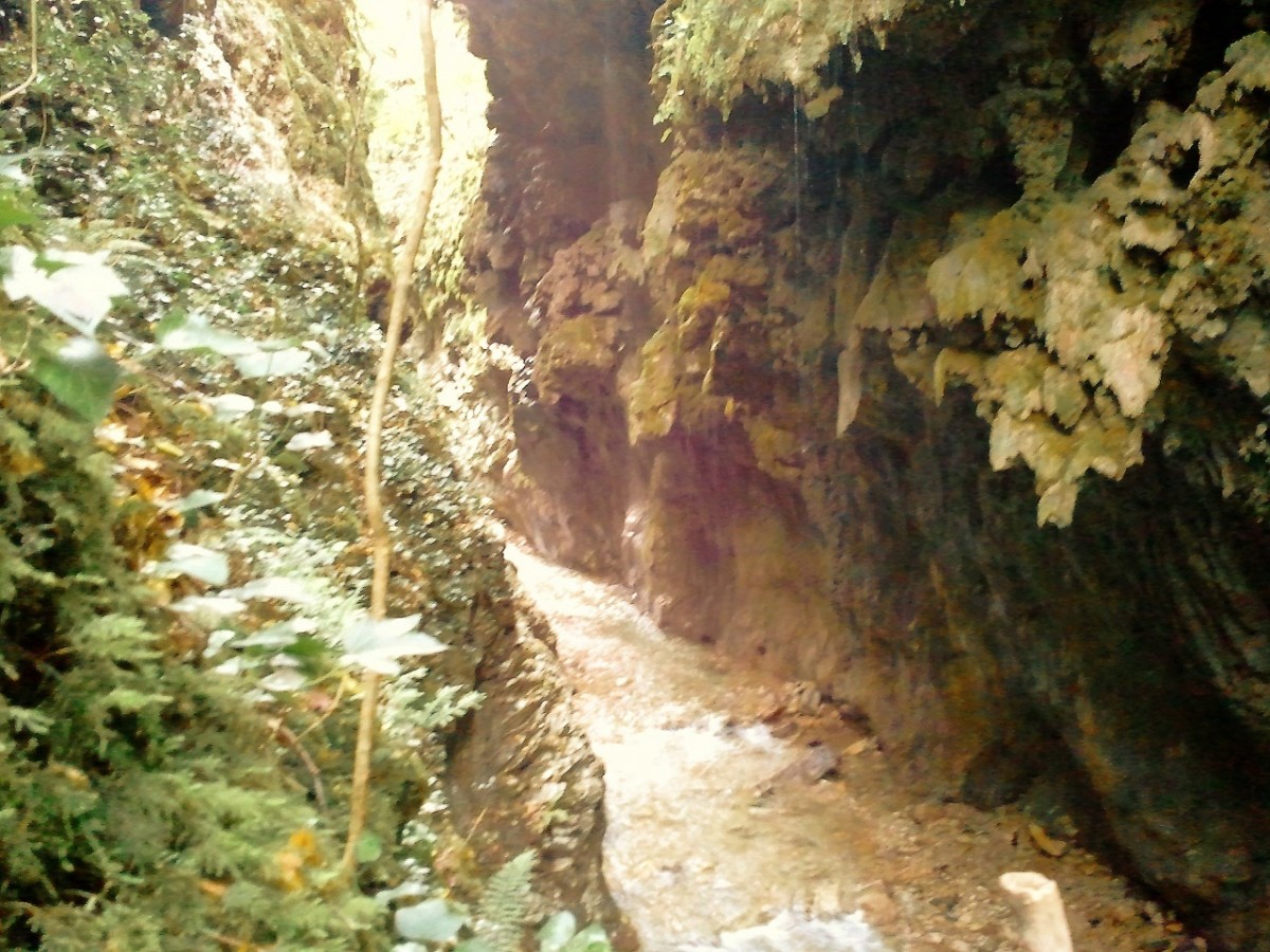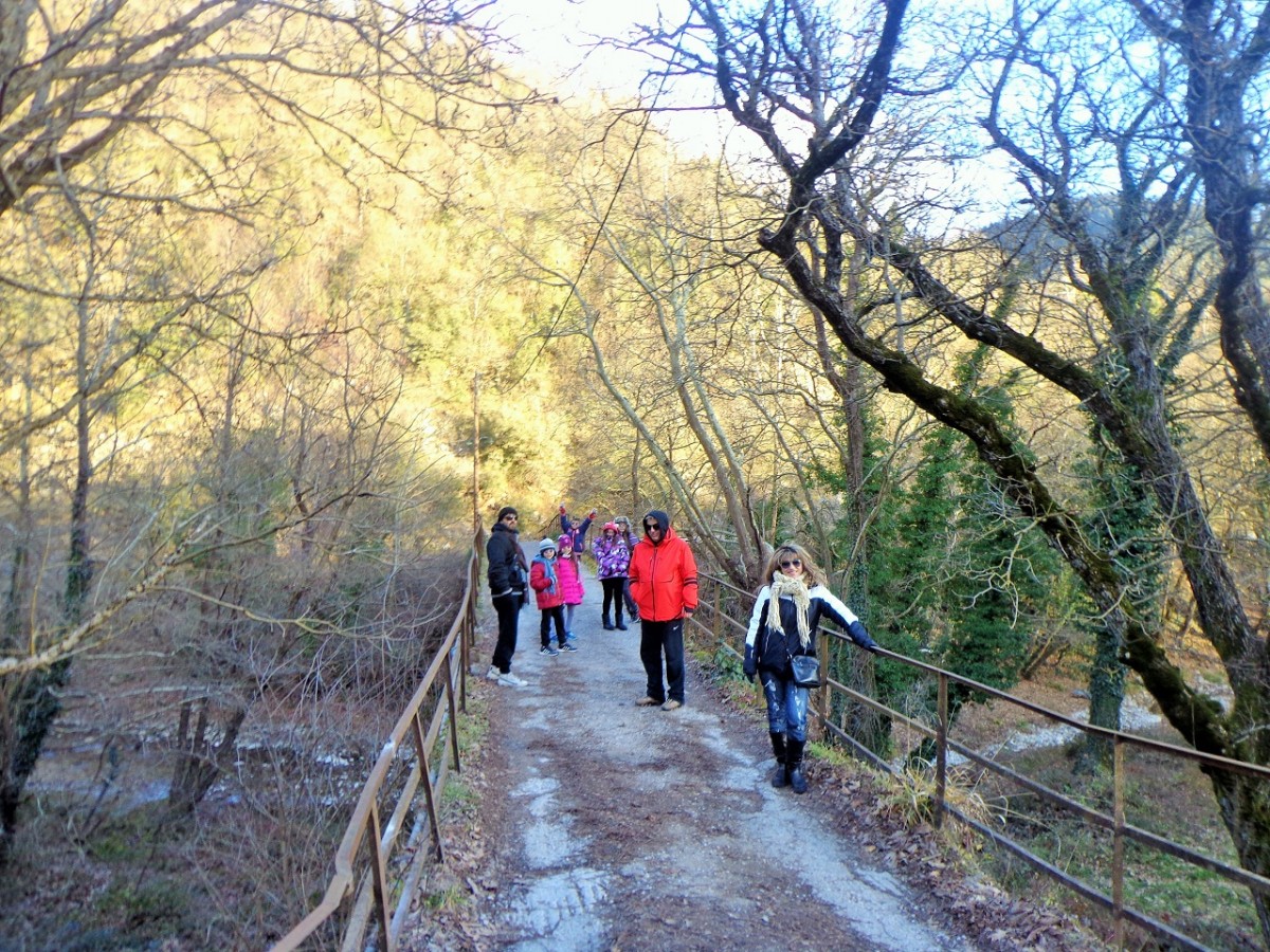 Καλό ακούγεται, για να χωνέψουμε όσο φάγαμε και ήπιαμε. Η διαδρομή από αρχής χαρίζει απλόχερα την ομορφάδα της… Το μονοπάτι κυλά ελαφρά ανηφορικό μέχρι την ξύλινη γέφυρα που αγναντεύει τον φασαριόζικο καταρράκτη της. Λες και περπατάς σε παραμύθι. Πλατάνια περιτριγυρίζουν το ποτάμι, τα νερά ξεπλένουν κάθε σου έγνοια και συ τράβας μια σέλφι για να πιστεύεις αύριο, το παραμύθι που περπάτησες... Ανηφορίζουμε το μονοπάτι δίπλα στο ποτάμι, που κυλάει ορμητικά πλάι μας. Και άλλοι καταρράκτες, θαρρείς πως θέλει ο καθένας να εντυπωσιάσει πιότερο από τους άλλους τις αισθήσεις σου. Και εκεί στης ανηφοριάς τα βήματα, που λόγω της πέτρας και της υγρασίας γλιστρούν στα πατήματα σου, ανασηκώνεις το βλέμμα και την αντικρύζεις. Μια σπηλιά, μια μαύρη σπηλιά φοβιστικά σε θωρεί από ψηλά, μετρώντας τη θέληση και την προσοχή σου να την κατακτήσεις. Η αλήθεια είναι πως ακόμα και τα ορειβατικά πατινάρουν στην γλιστράδα του ξύλου και της πέτρας στο διάβα τους. Αν έβρεχε θα ήταν πολύ επικίνδυνα τα πράγματα. Μα η σαγηνεύτρα μας καλούσε και μόνη βροχή αυτή του νερού στα βράχια. Κρατήθηκα, μετρίασα τη φοβία της γυναίκας και ανέβηκα. Μια στάση στα ψηλά, δυο φωτογραφίες από τα κάτω και με προσοχή προς τα πίσω. Τα κινητά αποθανατίζουν την ομορφάδα της φύσης. Άξιζε σίγουρα η ανάβαση...