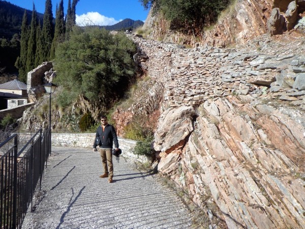 Βάνουμε το αυτοκίνητο στο πάρκινγκ του μοναστηριού και κατηφορίζουμε για να προσκυνήσουμε. Στην εκκλησιά, αφήνουμε για λίγα λεπτά τις σκέψεις και το λογισμό μας. Μετά ένα λουκούμι και μπαίνουμε στο μικρό μουσείο, όπου μεταξύ των εκθεμάτων ξεχωρίζει του Καραϊσκάκη η σπάθα. Στην ανηφοριά, αντικρύζουμε το βράχο με το ρολόι, πάνω από τη μονή. Δεν χάνουμε την ευκαιρία να περπατήσουμε τρία λεπτά μέχρι την κορφή του. Από εδώ, αγναντεύουμε ολόγυρα καθώς η θέα είναι υπέροχη, ενώ και ο ήχος του ποταμού μέσα στη χαράδρα, χαλαρώνει τα αυτιά μας. Κάπου κάτω εκεί, ακούσαμε από έναν παππού να λέει, πως υπάρχει το μικρό πανταβρέχι. Για το μεγάλο είχαμε ακούσει πολλά για τη φήμη του και λέγαμε κάποια στιγμή να το γευτούμε. Για την ώρα και μιας και όπου ακούμε μονοπάτι διαβαίνουμε, πάμε να ανακαλύψουμε την ομορφιά του…