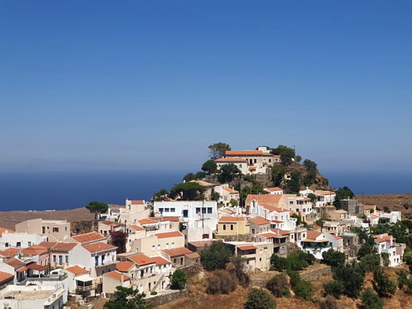 Στην Ιουλίδα, την Χώρα του νησιού, οι αυλές των σπιτιών εκτείνονται χαρακτηριστικά πάνω από τα καλντερίμια, διαμορφώνοντας τα λεγόμενα στεγάδια.