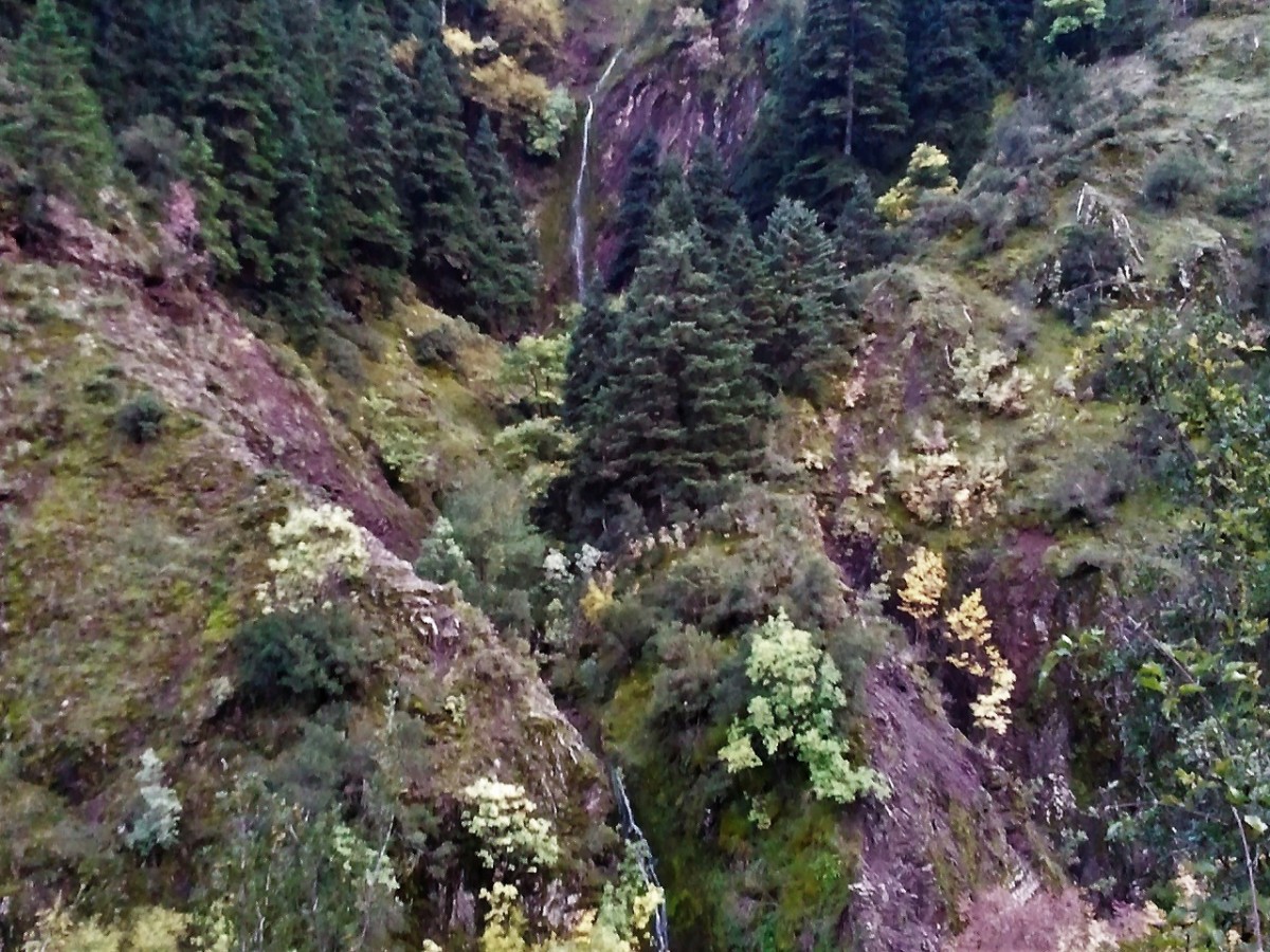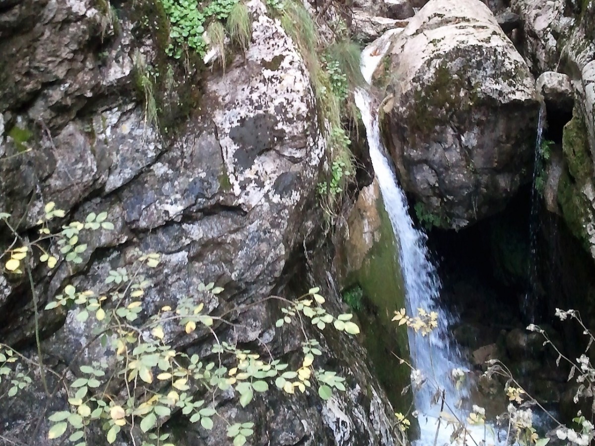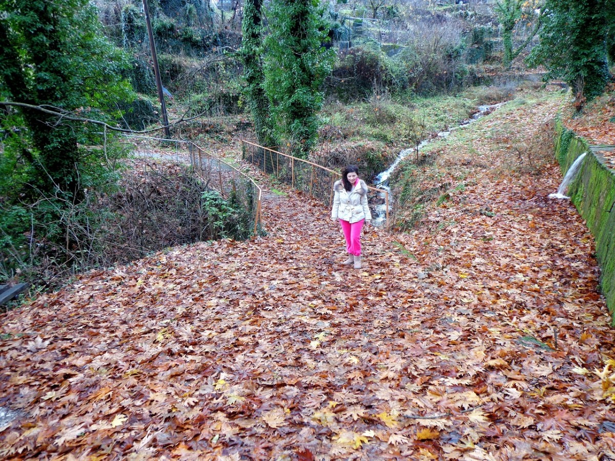 Το κατέβασμα προμηνύει λίγη προσπάθεια στην επιστροφή. Μανιτάρια ξεπροβάλουν στις ρίζες των δένδρων, ενώ ένα γάβγισμα ακούγεται από τα πέρα χωριά. Κάνει παρέα στον ήχο του νερού που όσο κατηφορίζουμε δυναμώνει. Και καθώς σκεφτόμαστε πόση ανηφοριά μας περιμένει, φτάνουμε στην άκρη, εκεί που σε μπαλκόνι το μονοπάτι γίνεται και εμείς αποσβολωμένα μαγευόμαστε από την ομορφιά του τοπίου. Νερά τρέχουν από παντού. Στάζουν από τις πρασινάδες που χύνονται στα βράχια, κυλούν στο ρηχό ποτάμι, βρέχουν και βρέχονται από στάλες και άλλες στάλες, υγραίνοντας τα πάντα. Θαρρείς πως μάγισσα θα βγει από την ομίχλη της βροχής και θα ζητήσει το λόγο που πατήσαμε τα μέρη της... Αν είχε ζέστα, μια περπατάδα στη βροχή των νερών θα άξιζε σίγουρα τον κόπο, όμως δεν κάμουμε δεύτερες σκέψεις... Αιχμαλωτίζουμε τη μαγεία των στιγμών στο μυαλό και στα κινητά και με βαριά καρδιά που θα αφήκουμε πίσω τέτοια ομορφάδα, ανηφορίζουμε προς το χωριό για το αμάξι...