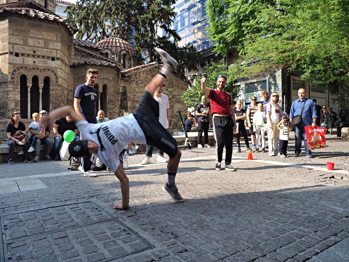 Κατηφορίζοντας προς Καπνικαρέα, στέκουμε στους "χιπ χόπερς" που μας καθηλώνουν με τα ζογκλερικά δημιουργήματα των κορμοστασιών τους. Πιο δίπλα η λατέρνα ζητά τον οβολό για να παίξει χαρούμενα, ενώ πλανόδιοι πωλούν την κάθε λογής πραμάτια τους...