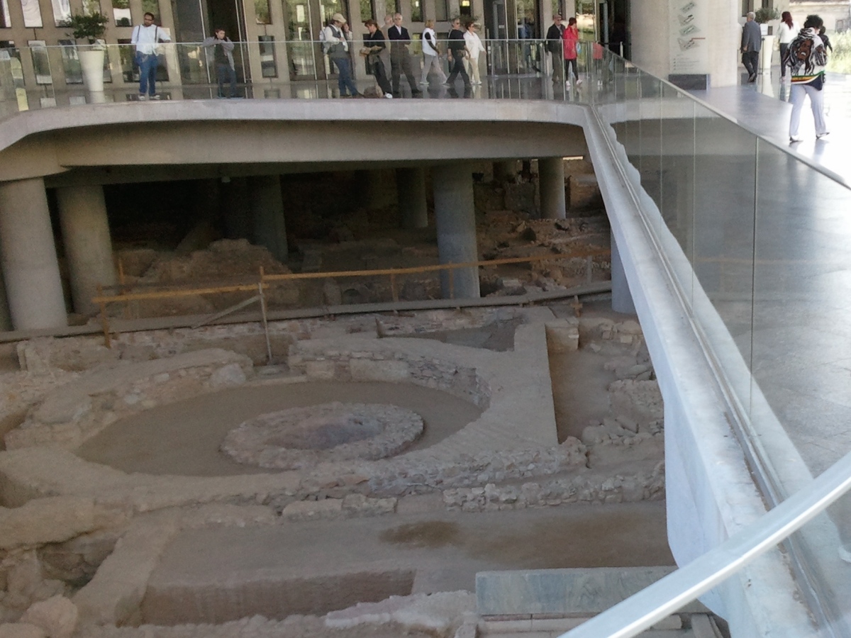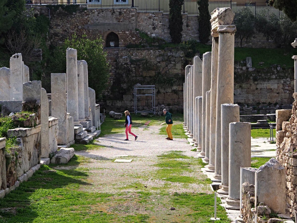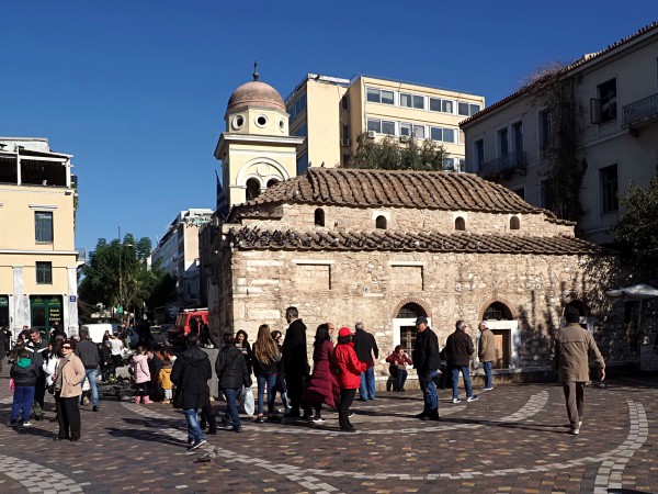Πιο δίπλα νά μαστε στο "αρχαίο μοναστηράκι" όπου οι στήλοι επιβλητικά μας κοιτούν ψηλά και μεις καθόμαστε στη σκιά τους για να ξεκουράσουμε τα κορμιά στην καγκελωτή μάνδρα τους. Κλείνουμε τη βόλτα με γλυκίσματα που αγοράζουμε από τα στενά και πριν χωθούμε στις στοές του μετρό, παρουσιάζουμε στους επισκέπτες μας, τον αρχαίο Ηριδανό που για χρόνια κυλούσε χαμένος κάτω από την πόλη, πριν τον ξαναβρεί ο πόντικας του μετρό...