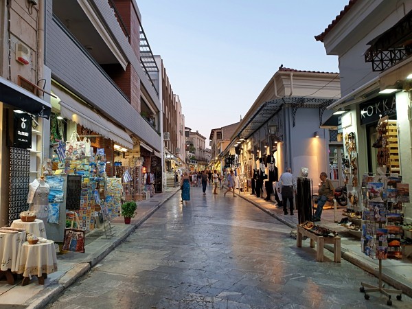 Ανάμεσα σε αναμνηστικά που τραβούν ολούθε το βλέμα, τραβούμε προς τη νυχτερινή ακρόπολη. Για καμιά ωρίτσα δοκιμάζουμε σαν τουρίστες κι εμείς, ελληνικές γεύσεις - σαν της μαμάς δεν είναι - αλλά σε σχέση με τα φαγιά που γεύονται στις ξένες τους πατρίδες, τούτα φρονούμε, τους φαίνονται γλυκίσματα!